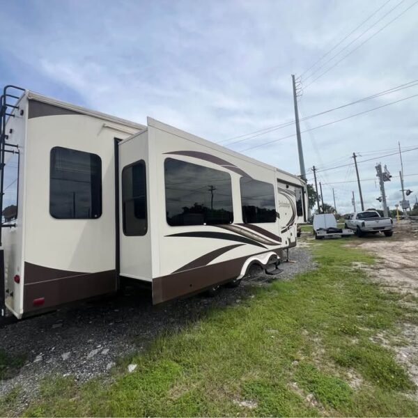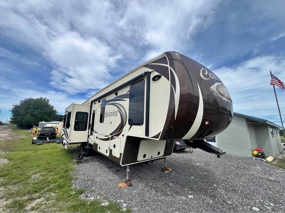 O 2013 Palomino Columbus 320RS é um fifth wheel de luxo com 3 slides, modelo americano, ideal para quem busca conforto e espaço em viagens longas. Traz acabamento residencial, cozinha com ilha, sala ampla e suíte frontal. Construído com estrutura de alumínio e ótimo isolamento, combina resistência e elegância. Perfeito para famílias ou casais que querem viver ou viajar com conforto premium.
