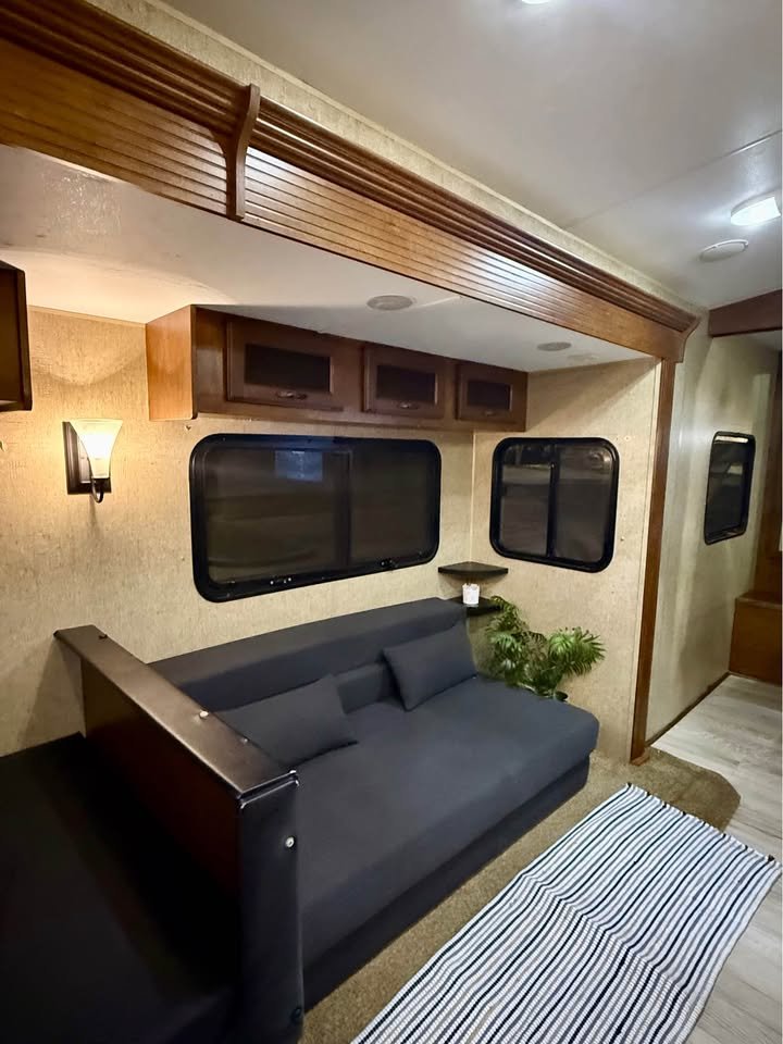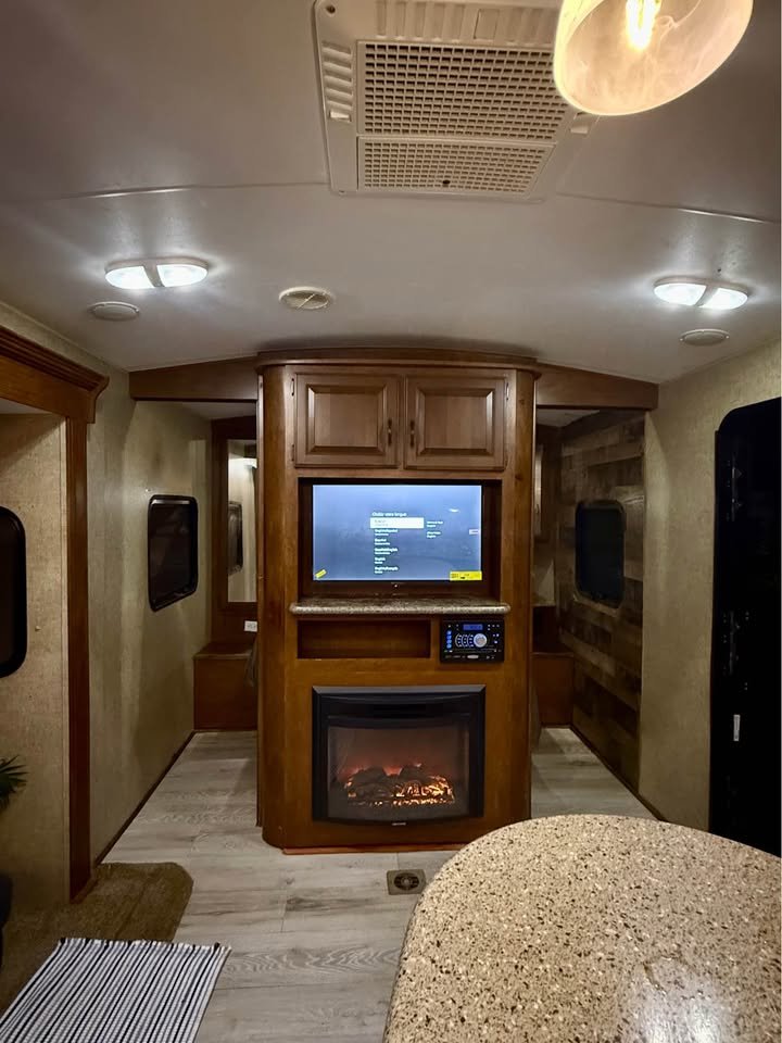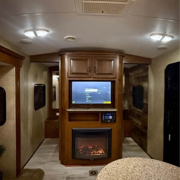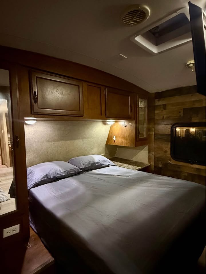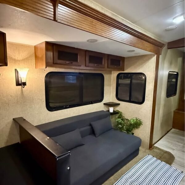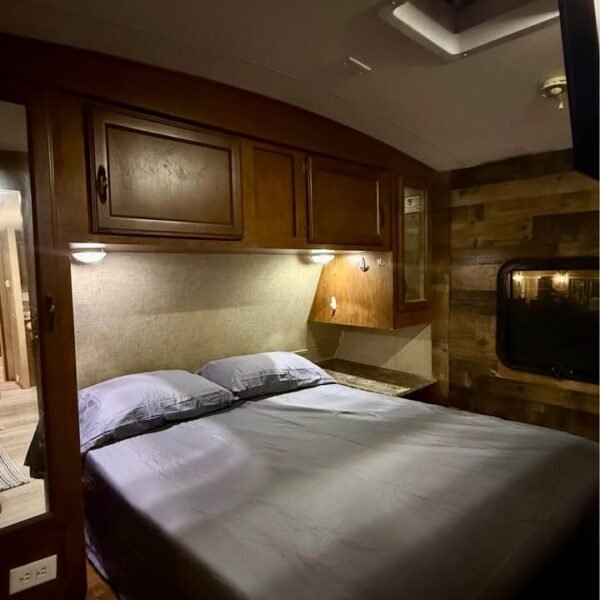 Sala de Estar: Sofá reclinável / conversível, TV LED com suporte giratório para quarto e sala, Sistema de som interno, Ar-condicionado central