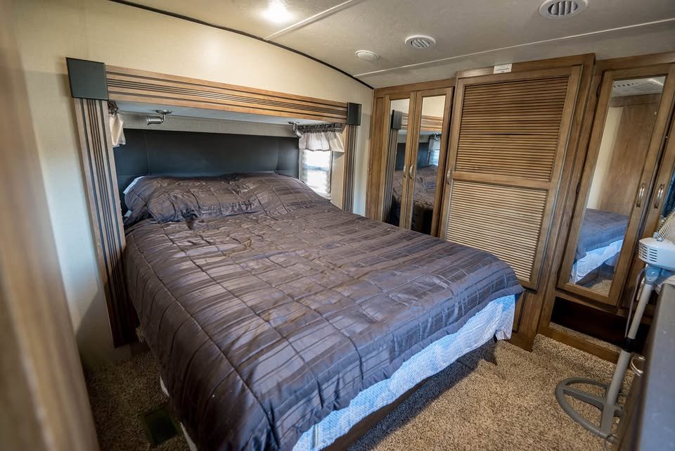 Quarto principal: Cama de casal “queen-size” com colchão estilo residencial, Guarda-roupas grandes, mesas-de-cabeceira, tomadas, porta USB, iluminação de leitura, Ar-condicionado dedicado e dutos de ventilação para conforto