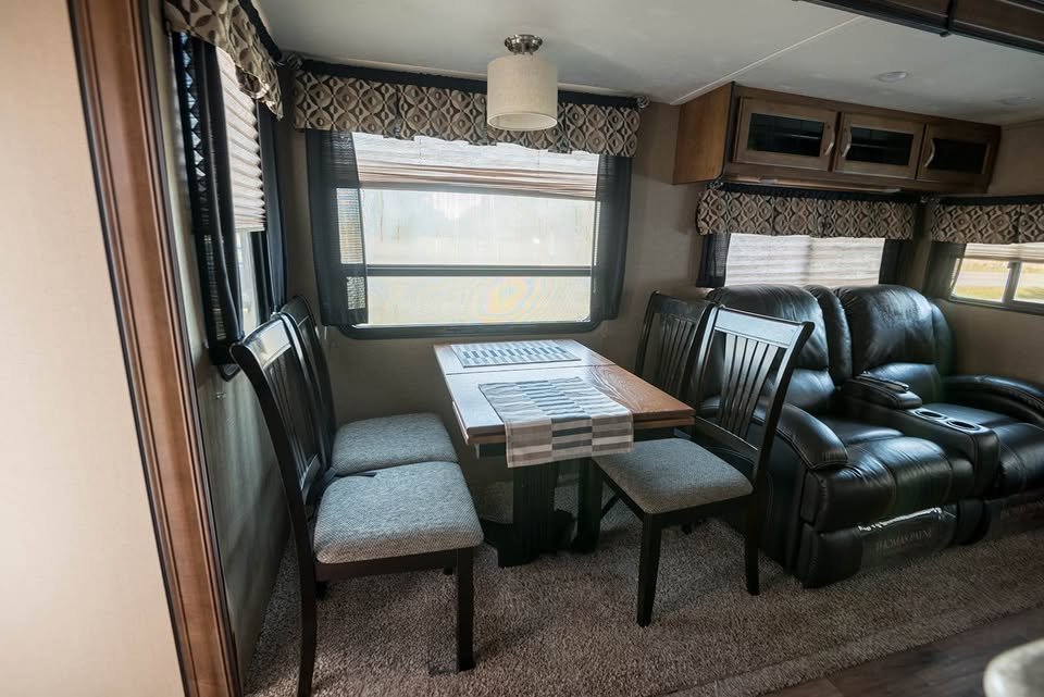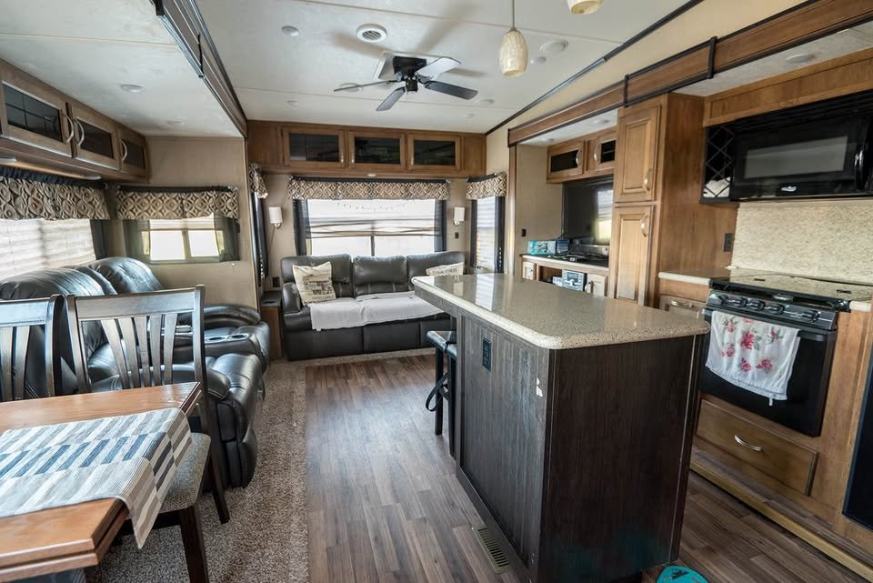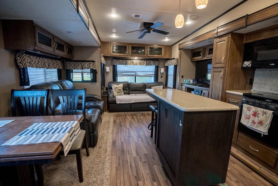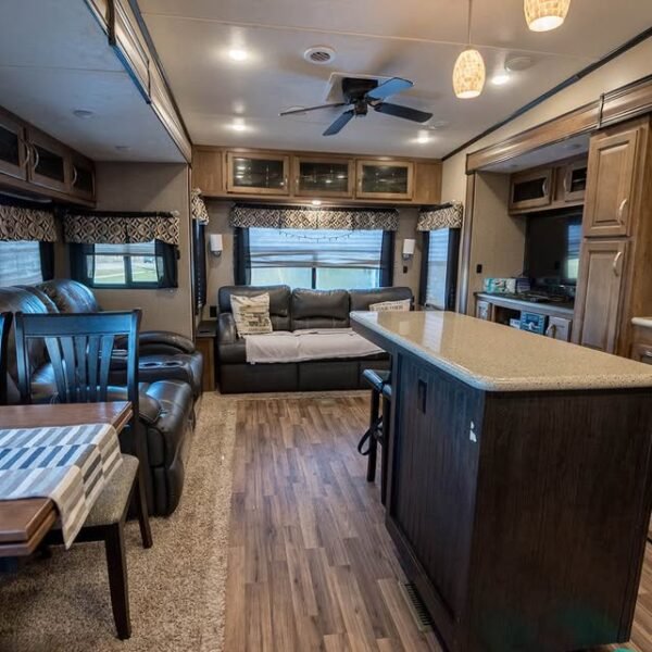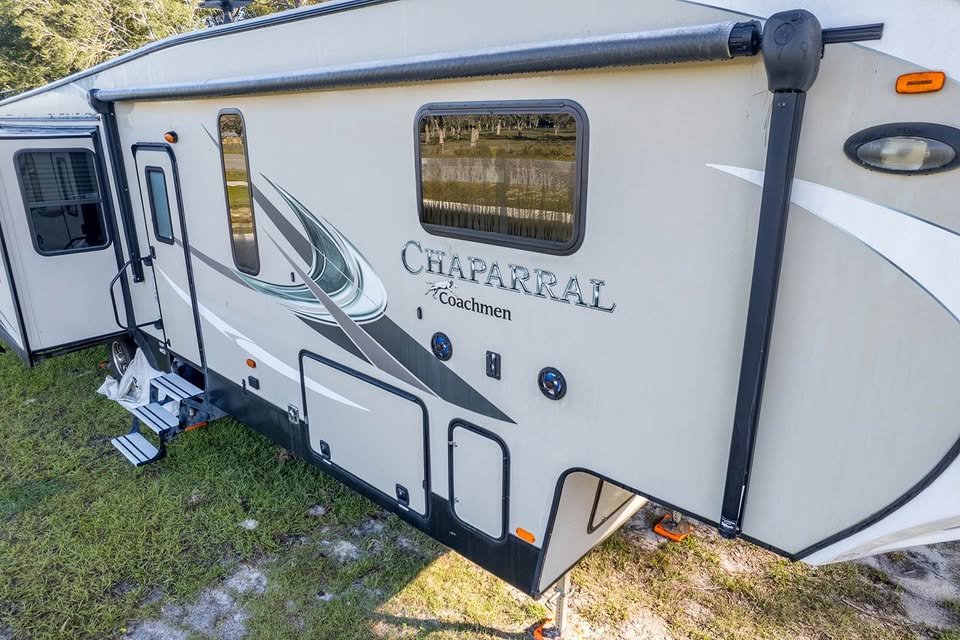 O Coachmen Chaparral 360IBL (2017) é um fifth wheel americano de alto padrão, espaçoso e bem construído, ideal para famílias grandes ou casais que buscam conforto total nas viagens. Tem estrutura resistente, ótimo isolamento, cozinha completa, sala ampla com lareira e TV, quarto confortável e acabamento refinado. Seu sistema externo com toldo elétrico, nivelamento automático e preparo para energia solar garante praticidade. É um trailer feito pra quem quer viver na estrada com luxo e sensação de estar em casa.