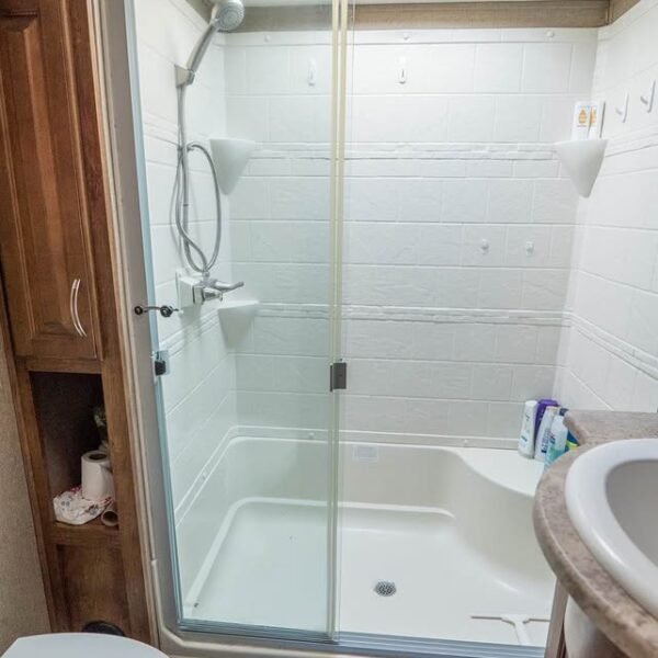 Exterior: Estrutura leve e resistente de alumínio com isolamento térmico Azdel, Toldo elétrico com luz de LED, Escada traseira e compartimentos amplos de armazenamento, Rodas de alumínio com suspensão reforçada, Sistema de nivelamento elétrico, Preparado para painel solar no teto, Iluminação externa em LED e degraus retráteis.