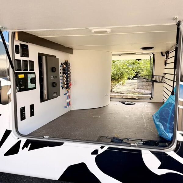 Exterior: Estrutura robusta com paredes laminadas, isolamento reforçado, janelas duplas sem moldura, compartimento de bagagem, acabado e aquecido, Toldo elétrico com iluminação em LED, estação externa de entretenimento / som, sistema elétrico 50 amp e preparação para painel solar, Chassi reforçado: sistema de suspensão de alta qualidade, suporte para uso em temporadas longas.