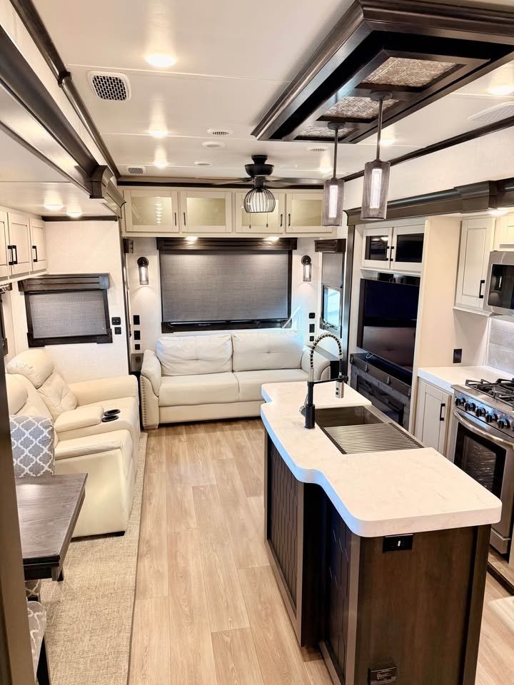 O Redwood 3401RL 2021 é um fifth wheel americano de luxo feito para quem quer conforto de casa em uma vida sobre rodas. Ideal para casais ou famílias grandes que pretendem viajar por longos períodos ou até morar dentro do trailer, ele combina espaço, elegância e estrutura robusta. Esse modelo é voltado para pessoas que buscam tecnologia americana, que valorizam conforto, qualidade de construção e um estilo de vida mais livre.