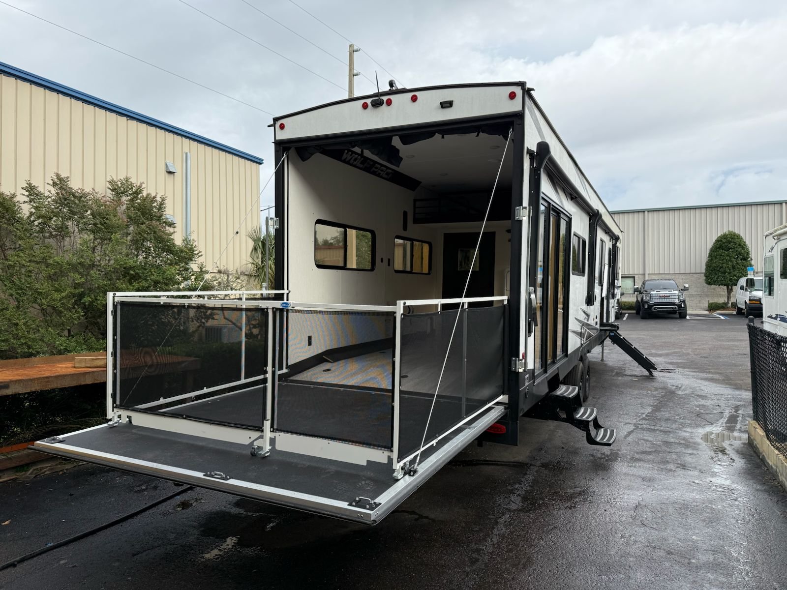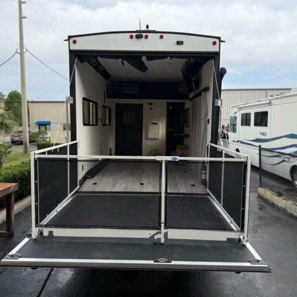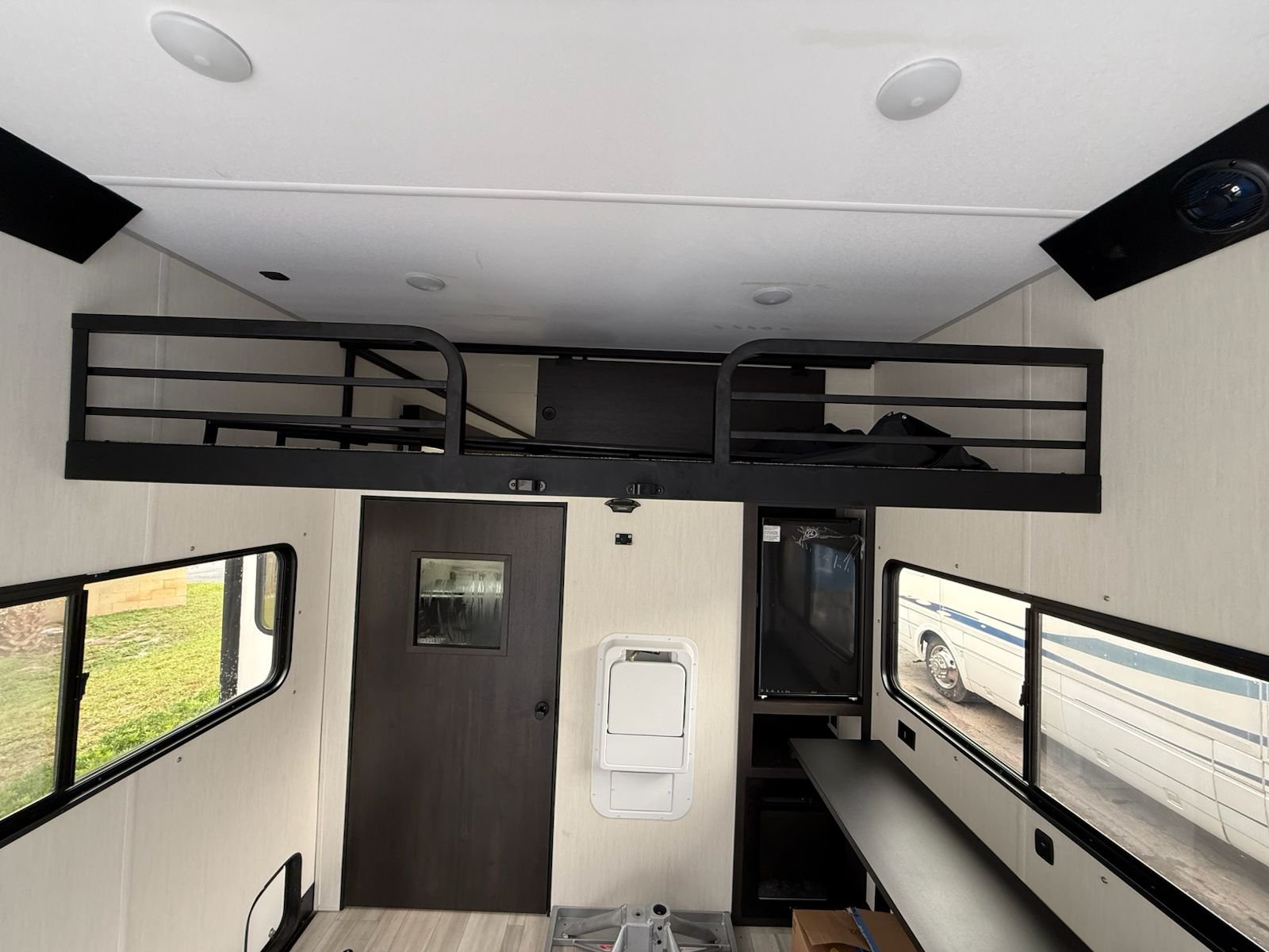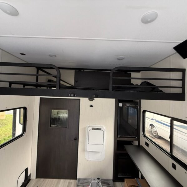 Quarto Principal: Cama: King-size, sem slide-out, ideal para reduzir o peso do engate. Armazenamento: Quatro gavetas superiores e armário com preparação para máquina de lavar/secar. Ambiente: Iluminação suave com luzes de puck e ventilação eficiente.