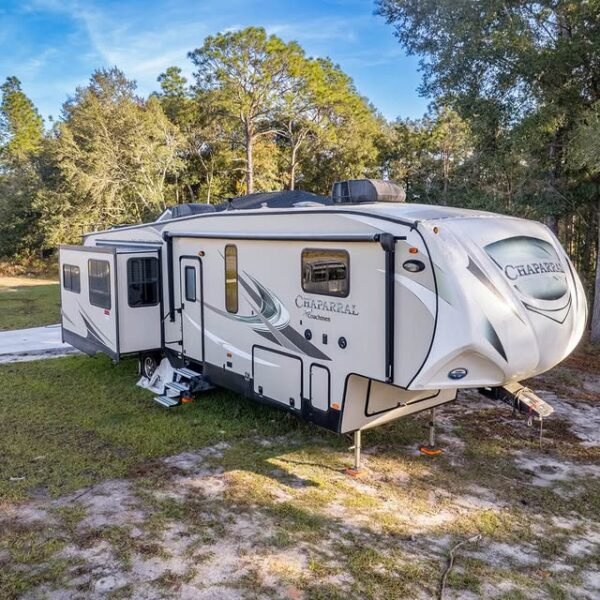 Detalhes Técnicos Slides: 1 slide para ampliar a área da sala de estar. Capacidade de Dormir: Acomoda confortavelmente 4 a 5 pessoas. Entrada: Duas entradas para facilitar o acesso. Toldos: Dois toldos de 15' cada para áreas externas.